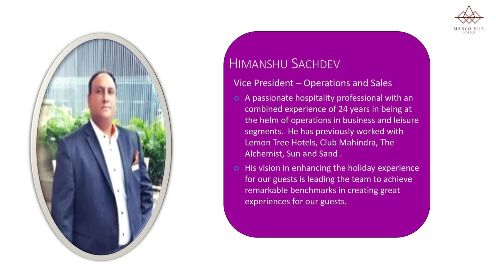 Having garnered a wealth of experience across operations, and management from their legacy parent companies, this young couple wanted to venture into the hospitality space on their own terms. Partners in life and in business, they took on select Mango Hill properties, with a view to making them the finest in their category. With attention to detail, a fine taste in world cuisine, and guest experiences, this well-traveled couple is well on their way to making Mango Hill the Gold Standard.
